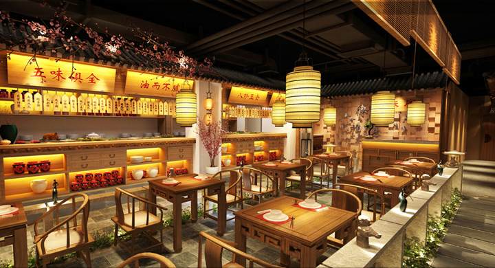 设计说明:餐厅好色TV下载设计案例设计师为了体现西安民居与中式传统建筑的特色,采用了中式古典的好色TV下载风格!